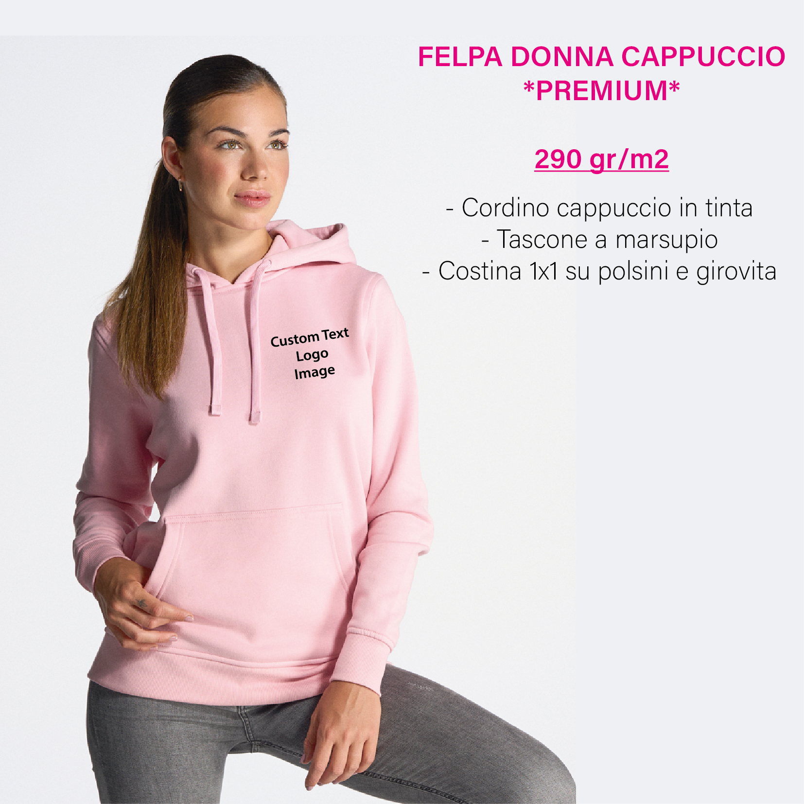 Felpa Donna con Cappuccio *Premium* 290 gr/m2 Personalizzata