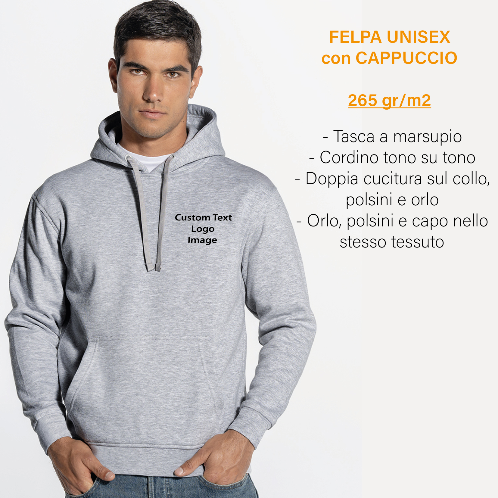 Felpa Unisex con Cappuccio JT 265 gr/m2 Personalizzata