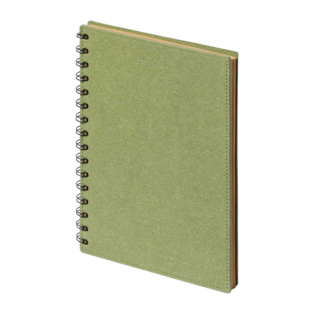 Quaderno a spirale in cartoncino riciclato. 80 fogli a righe, formato A5.