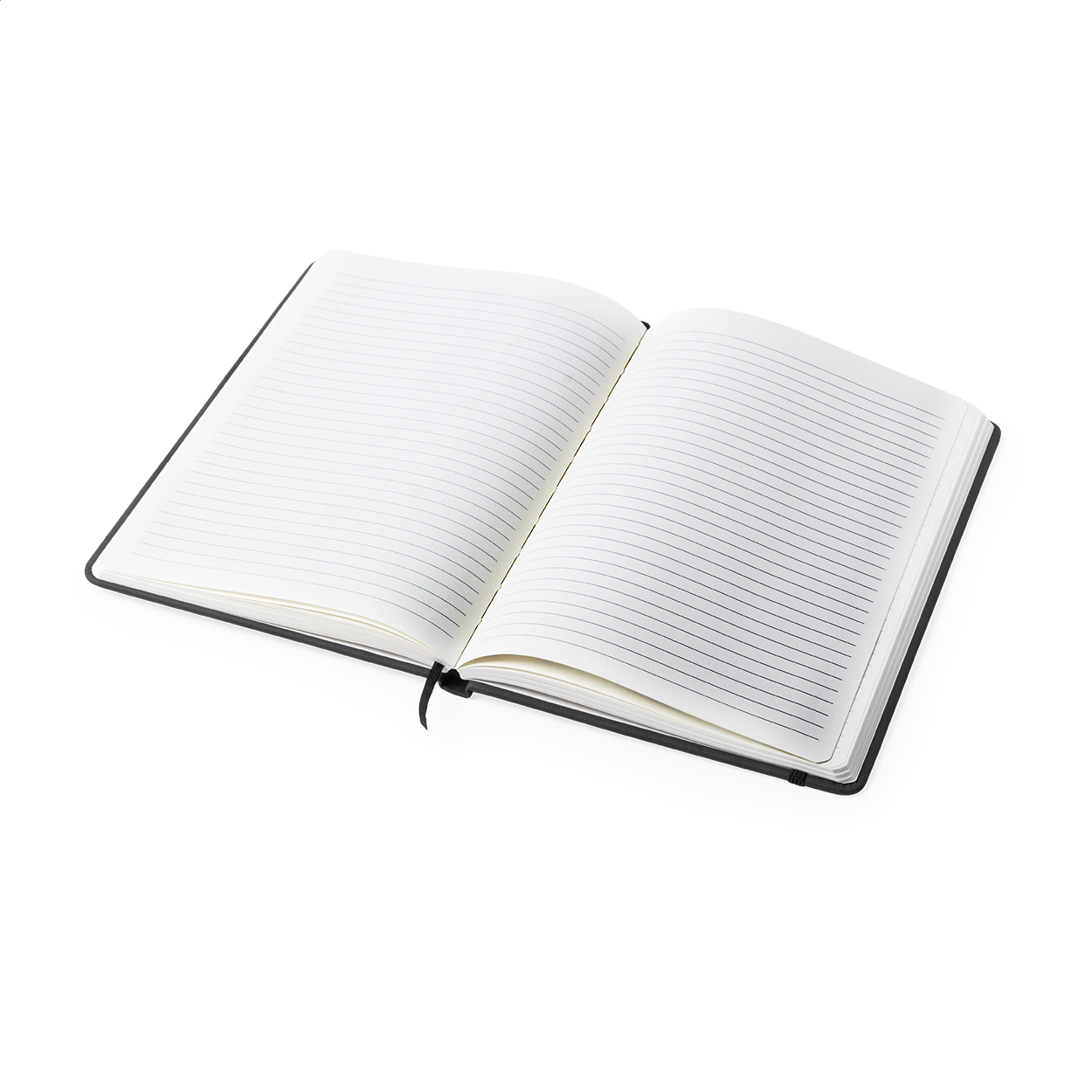 Quaderno con rivestimento pelle PU, 100 fogli a righe, segnalibro e cinturino in gomma coordinati.