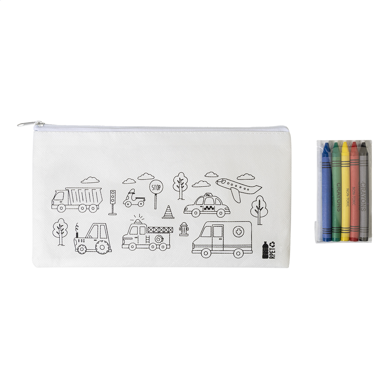 Astuccio in tessuto non tessuto RPET da decorare con 5 pastelli.