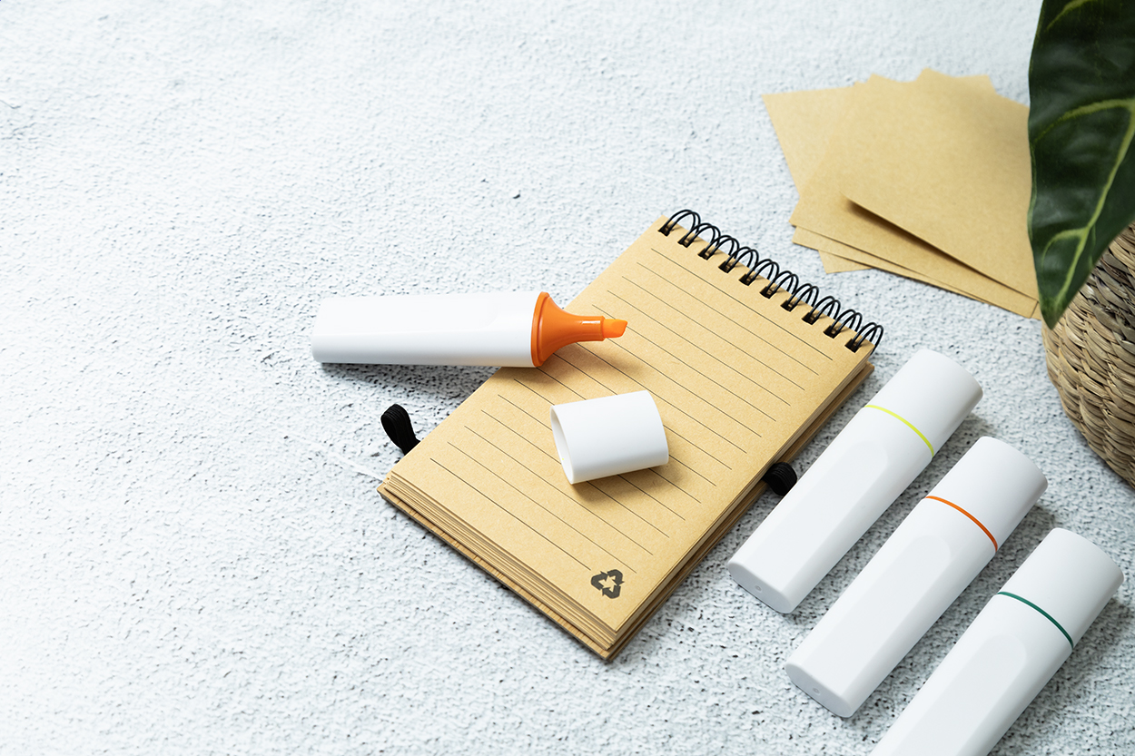 Evidenziatore in plastica ABS riciclata con cappuccio.