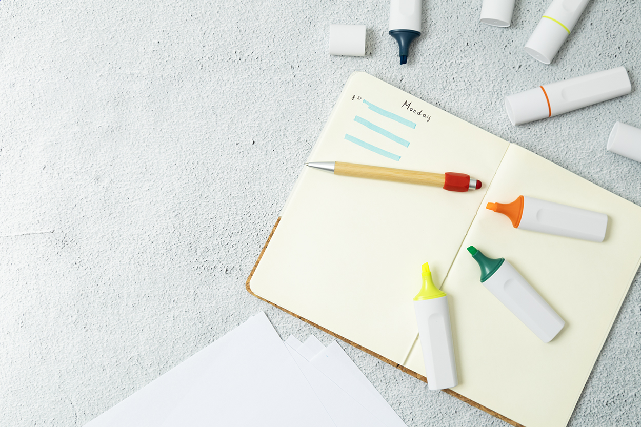 Evidenziatore in plastica ABS riciclata con cappuccio.