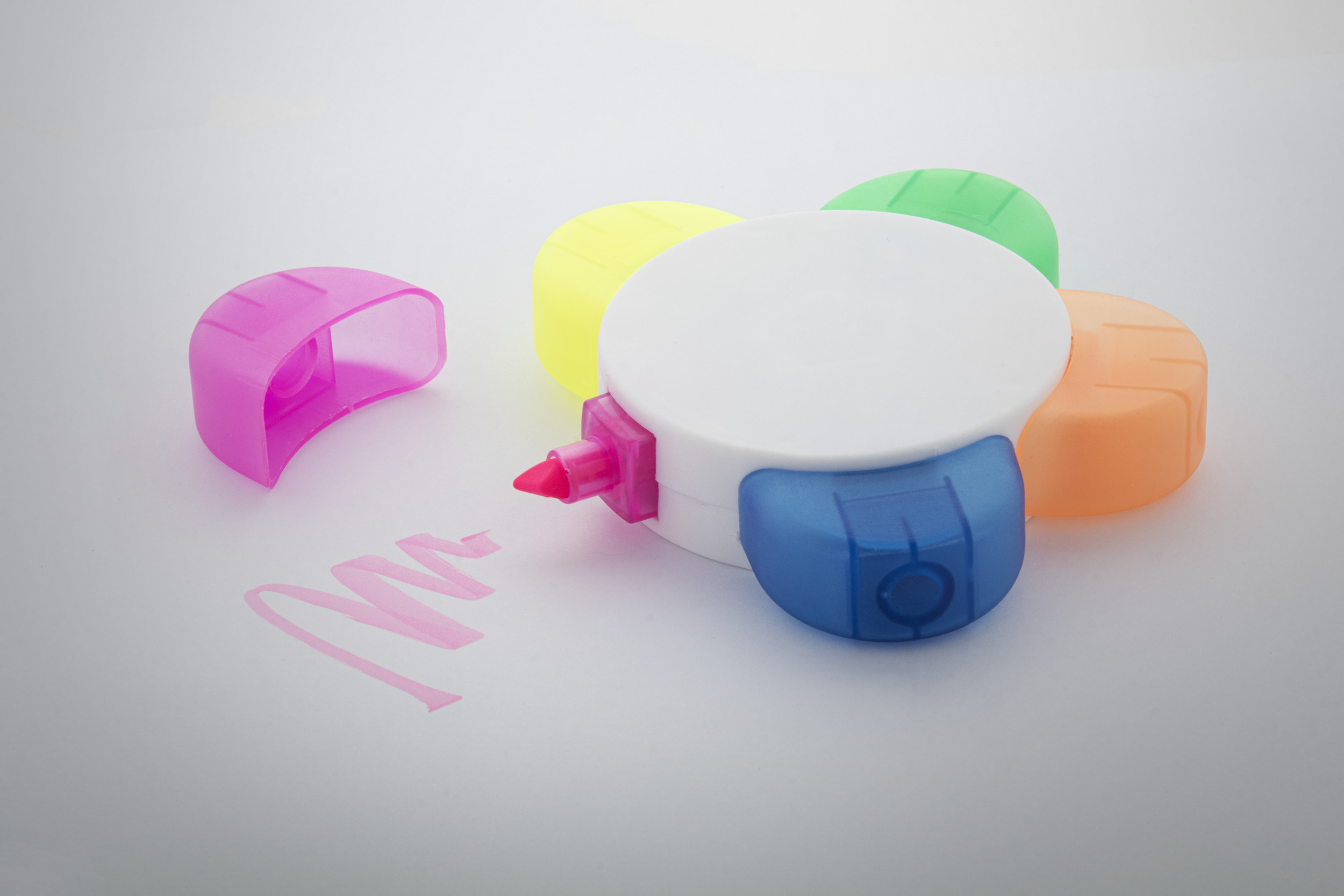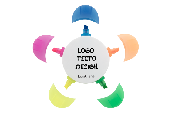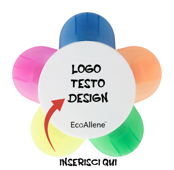 Evidenziatore in plastica riciclata EcoAllene® a forma di fiore con 5 colori.